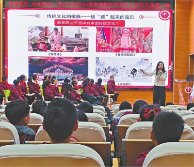 长江日报讯(记者杨幸慈 通讯员刘福旋 周盛瑶)“用一个词说说你对马年春晚的印象是什么?”近日,武汉经济技术开发区沌口小学报告厅内气氛热烈,一场以“骐骥驰骋,做自己的‘奇迹’”为主题的开学思政第一课在此举行。该校党总支书记谢艳霞以2026年春晚为素材,将科技、文化与家国情怀巧妙融合,为全校师生带来一堂有温度、有深度、有互动的“大思政课”。