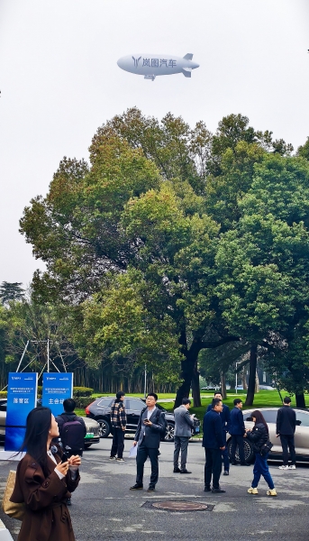 3月19日,一艘印着“岚图汽车”的白色飞艇出现在东湖上空。