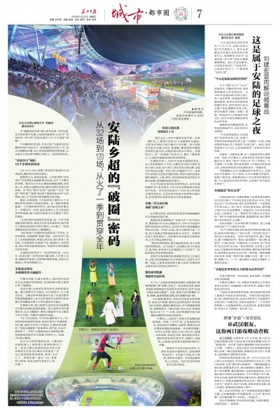 乡超给安陆带来了一场足球的狂欢。2025年,安陆乡超一经举办就火爆出圈,八次登上央视,被欧洲侨报等十余家境外媒体报道,全网点击量破亿,带动消费超亿元。