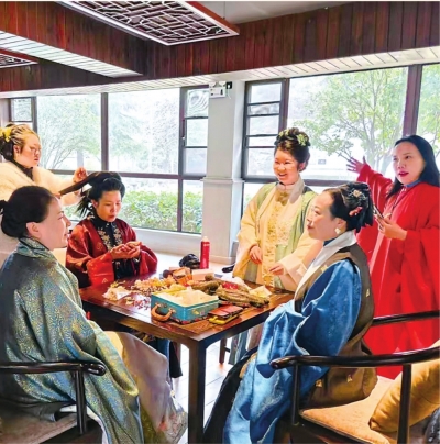 第一次来清凉寨游玩的私营业主黄女士和朋友,也体验了一把古风短剧拍摄。她们在化妆师的帮助下换上明制汉服,准备演绎一场赏花游园的戏码。黄女士兴奋地告诉记者:“我们都是第一次穿汉服、化古妆,在这么美的樱花林里拍戏,感觉特别新奇!等会儿还要去品尝药膳小火锅,这种沉浸式体验太有吸引力了,以后还会再来。”