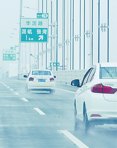 3月20日,双柳长江大桥上开往鄂州的车辆。