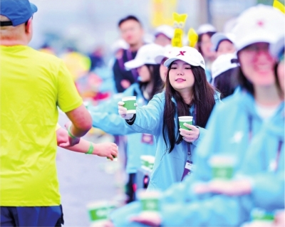 赛场上,半程终点的环卫工人感叹“好轻松”,地面上竟然没有一个丢弃的纸杯,跑友们主动把喝完水的纸杯放到垃圾袋里。