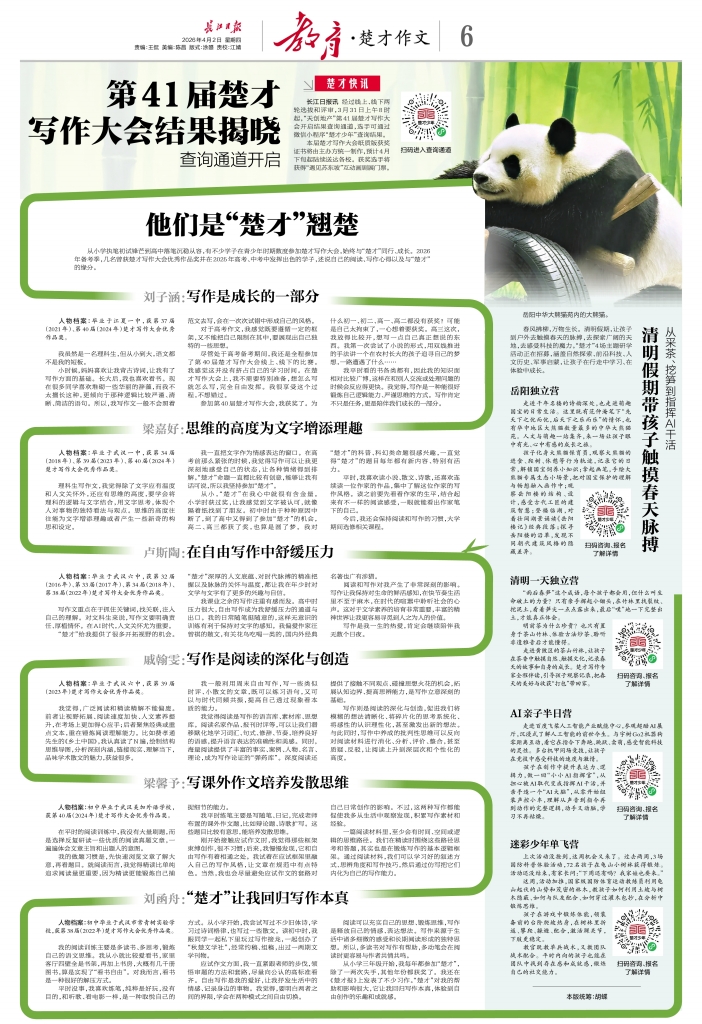 1 头版 2 要闻 3 加快建设世界知名文化旅游目的地 4 特别报道 5 大地 6 教育·楚才作文 7 教育·超级课堂 8 教育·超级课堂