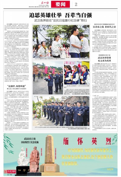 长江日报讯(记者杨佳峰 通讯员柳礼超 林新华)“勿忘国耻,吾辈自强”。清明节前夕,社会各界纷纷前往长江新区林家大湾“反抗日寇暴行纪念碑”祭扫,表达对先辈反抗日寇暴行英雄壮举的追思与缅怀。