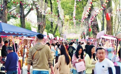 东湖风景区内的主题市集人头攒动。