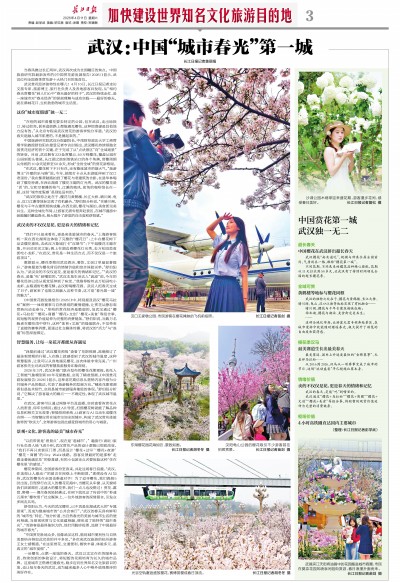 一朵樱花,点燃一座城的春天。武汉以实实在在的服务品质、持续创新的体验设计,将短暂的花期培育为长久的城市品牌。这座城市正借着烂漫春光,稳步迈向世界知名文化旅游目的地,也让每年春天的武汉,成为越来越多人心中格外值得期待的美好存在。