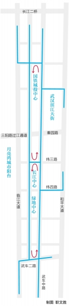 此外,地面机动车入地,为非机动车和行人创造更好条件,释放绿化景观空间,提升营商与居住品质。地下环路还连接三阳路过江公铁隧道,形成复合交通纽带,提高商务核心区到发效率,加强武昌滨江商务区与汉口方向的联系,助力两江四岸串联发展。