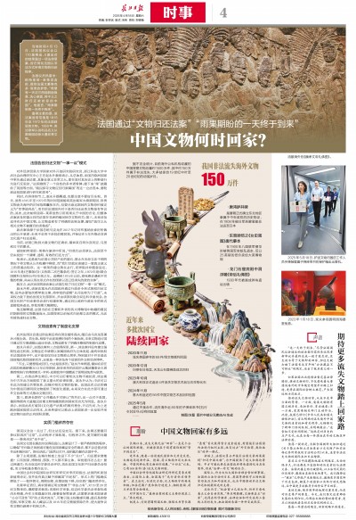 如果法国此次能借法案完善法律路径,推动文物回归,不仅意味着大量漂泊海外的中华瑰宝有望早日踏上归途,更将在国际社会树立典范,产生深远的示范效应。