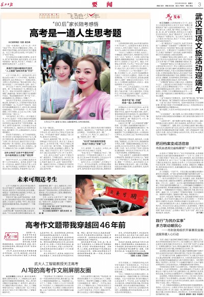 当年,因为父母说“女孩子不要去外地”,崔莹读书、工作都在武汉。如今自己的女儿参加高考,她却劝孩子如果有机会,可以考虑外地的大学,去更广阔的世界看一看。祖国有大好河山,不同城市有不同的风土人情,年轻时多一些经历、多走一段路,对成长是件好事。