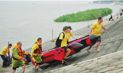 2016年,志愿队除了在两江四岸值守,还成立了应急队和民兵连,开始成建制地参加城市重大活动保障和应急救援。上级要求他们:“平常养精蓄锐,关键时刻必须顶上去。”当年7月,志愿队出动100多名队员和冲锋舟,历经9天,辗转武汉市内和省内多地,转移受洪灾群众1227人。