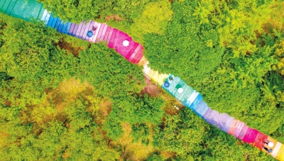 对了,除了这个“彩虹阶梯”,武汉还有其他的“彩虹”!比如,在江夏纸坊通往白云洞的铁轨有“彩虹”,它让冰冷的铁轨枕木有了活力;在光谷也有座彩虹桥,和空轨平行,色彩鲜艳非常好看……