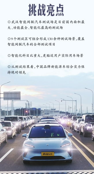 “天气良好的情况下,场内几乎每天都有汽车过来进行测试。”武汉智能网联汽车测试场负责人苏芮琦介绍,此次30余款热门新能源汽车集中封闭测试,是测试场投用以来车辆数量最多、使用天数最长和使用区域综合规模最大的一次。