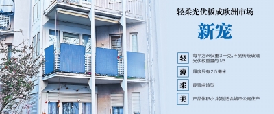 “产品体积较小,特别适合城市公寓住户。普通市民购买后就能自己安装,即插即用,能省下一大笔人工安装费用。”熊军算了一笔账,一块210瓦的轻柔光伏板长1.104米、宽1.083米,普通家庭一般安装4块,一年能发电560度,按照每度电0.285欧元计算,一年能省下159.6欧元电费。