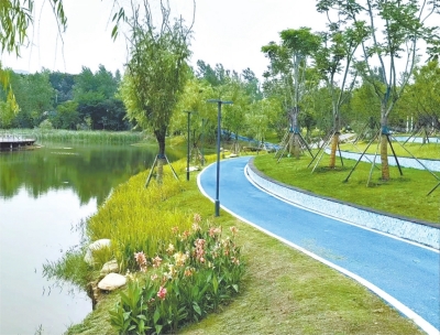 公园的路是彩色的,透水沥青材质不易积水,跑友能放心锻炼,住在附近的居民也可随时散步休闲。此外两条特色路也别具一格,一条蜿蜒上山,两侧植有红梅,另一条紧邻三环,种有乌桕。随着季节的更迭,市民将在这里领略到一幅幅绚丽多彩的自然画卷。