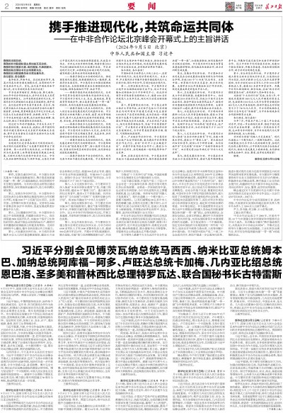习近平出席中非合作论坛北京峰会开幕式并发表主旨讲话