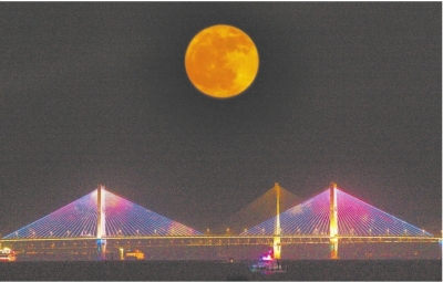 高颜值的鹦鹉洲长江大桥是摄影师心中最出片的跨江大桥之一,当大桥与圆月相遇,柔和的月光弥漫笼罩,亮眼的橘红桥体在月色下熠熠生辉,展现别样美丽。远观大桥与月亮同框,还可以在大桥两边的观景人行道上步行近距离看桥观景。