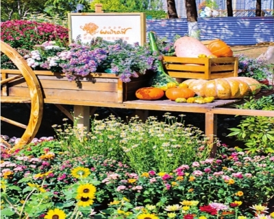 正因如此,当得知今年武汉又要举办金秋菊展时,我充满了期待。10月30日,我实在按捺不住内心的激动,带着相机早早地来到沙湖公园。尽管整个展区仍在布置中,但围栏外已经聚集了不少市民和游客。现场非常美,五彩缤纷。我最喜欢的是一辆用南瓜、葫芦和菊花装饰的木制手推车。