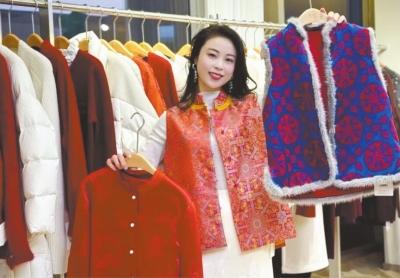 董女士说,临近春节,外套、连衣裙和马甲受到大家欢迎,店铺销量比上个月增长了50%。总的来看,武汉市民比较喜爱龙、凤和牡丹等元素,年轻人偏爱比较清新的粉色、青色,而中年人更喜爱色彩鲜艳的款式。