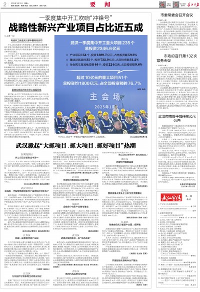 1月12日,武汉举行2025年一季度全市重大项目集中开工活动,东湖高新区设分会场。现场,东湖高新区集中开工22个重大项目,总投资353.1亿元,总投资额位居全市第一。
