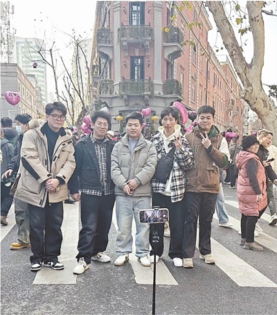 “看镜头,倒数5秒。”来自浙江台州的李腾(化名)将手机固定在自拍立架上后迅速跑回同学身边,5个大男孩摆出手势,留下新年的第一张合影。