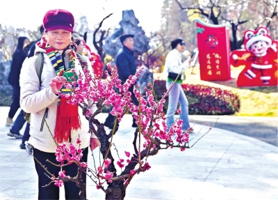 在一株盛开的梅花前,黄先生正在给家人拍照。“每年春节期间,我都会带全家人来东湖梅园游玩。”黄先生表示,“今年梅园的变化挺大,新增了很多景观,沿湖两侧的杉树还穿上了‘多巴胺’毛衣,打破了冬日的沉闷,感觉很温暖,孩子喜欢得不得了。”