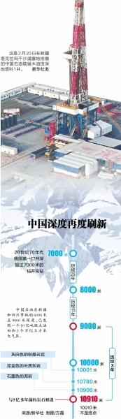 日前,我国首口超万米科探井——深地塔科1井在新疆塔里木盆地完钻,钻探深度10910米,成为亚洲第一、世界第二垂深井,创下全球陆上钻井突破万米“最快”、亚洲陆上取岩芯“最深”等多项工程纪录。