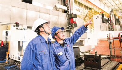 王潇介绍,与2013年的同系列产品相比,这台机床自身尺寸大了2倍,可加工出的零件重了5倍,加工精度提高了30%,国产化率提高了50%,“只需1人操作,就能将400吨的巨型零件一次加工成型,精度可达微米级。”