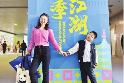 在樱花大道,长江日报记者偶遇李强一家,身穿汉马赛服的李强在人群中格外显眼。回顾这趟旅程,李强告诉记者,20日上午领取参赛物资后,当天下午,一家人便马不停蹄地前往汉口江滩,游览了江汉路步行街。“这些建筑都沉淀着故事,仿佛在诉说着这座城市的沧桑与繁华。”夜幕降临,他们一同欣赏江景,璀璨灯光倒映在江面上,如梦如幻。