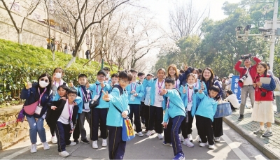 正值樱花盛放时节,140余名师生漫步武汉大学校园,粉白花海与百年学府的巍峨建筑相映成趣。孩子们认真聆听大学生志愿者的讲解,在樱花树下打卡拍照,灿烂的笑脸也感染到了旁人。武汉市政协委员、汉港联谊会副会长、香港保良局林文灿英文小学校长文诗咏介绍,该校是一所国际学校,除香港学生外,还有不少在港的外籍学生,希望能够通过游学的方式让孩子们收获跨越地域的友谊。