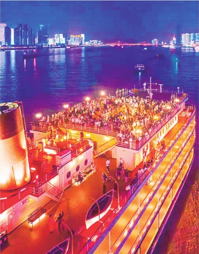 “与传统夜游不同,这里能看到璀璨江景,还能看演出、听音乐、品美食,体验感拉满。”4月4日晚,天津游客汤女士乘坐“长江荣耀号”游船夜游长江后高兴地说。
