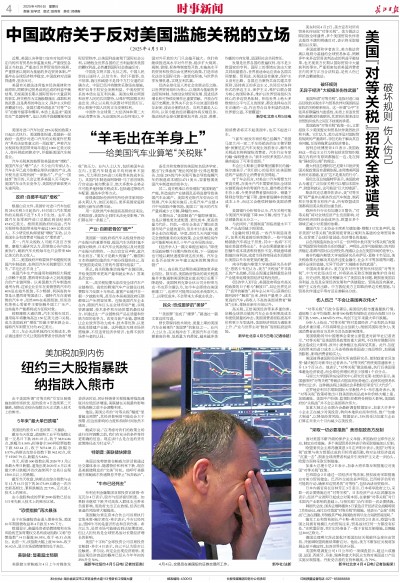 由于美国所谓“对等关税”引发反制措施加剧市场担忧,纽约股市4日连续第二天暴跌,纳斯达克综合指数当天正式跌入技术上的熊市。