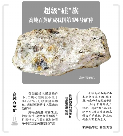 在找矿突破基础上,174号矿种的设立对这一超级“硅”族的保护开发,对保障我国高新技术产业链、供应链安全具有重要意义。