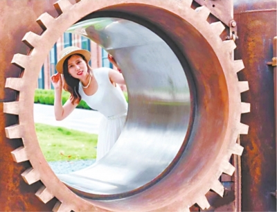 这个园区整体是“工业风”设计。一进去,我就感到特别亲切,那种熟悉感又回来了。可仔细一瞧,又感觉和当年不太一样。以前,我上班的时候,厂里热闹非凡,工人们忙忙碌碌的,到处都是热气腾腾的景象。现在,园区里大多是来打卡拍照的游客,大家安安静静地边走边看,有一种别样的静态美感。