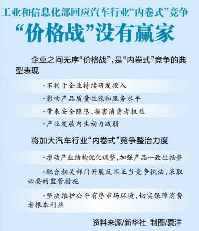 工业和信息化部相关负责人表示,将推动产业结构优化调整,加强产品一致性抽查,配合相关部门开展反不正当竞争执法,采取必要的监管措施,坚决维护公平有序市场环境,切实保障消费者根本利益,推动汽车产业高质量发展。