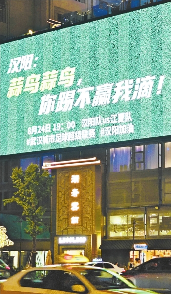 “宇宙中心和冠军我们都要”“蒜鸟你踢不赢光谷滴”……近日,有网友在社交媒体晒出光谷世界城广场1号门的巨幕,正围绕近期的汉超比赛“整活”。充满趣味的互动内容迅速引发关注,评论区化身“武汉旅游种草现场”:“武汉真会玩!”“大屏太有意思了,我也要去武汉看看!”
