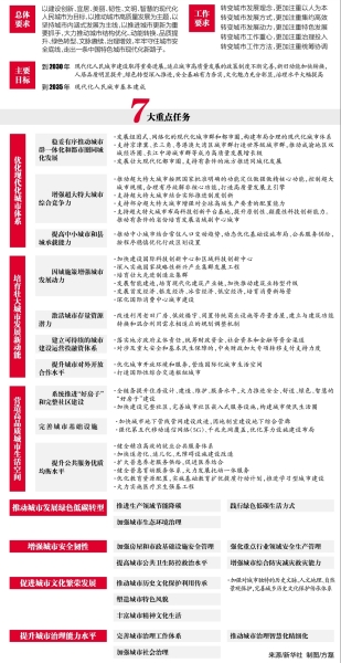 城市是复杂的有机生命体。围绕城市高质量发展的主要目标,意见部署了优化现代化城市体系、培育壮大城市发展新动能、营造高品质城市生活空间、推动城市发展绿色低碳转型、增强城市安全韧性、促进城市文化繁荣发展、提升城市治理能力水平等重点任务。