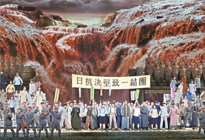 “向着全中国受难的人民,发出战斗的警号!向着全世界劳动的人民,发出战斗的警号!”当《怒吼吧,黄河》雄浑唱响,激流奔腾的河水恍若从天而降,传递着顽强不屈的精神信念。