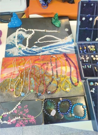 在朱钟宗的摊位上,首饰类价格大多在150元左右,受到女游客欢迎;大漆葫芦或漆画价格则定位于三四千元。这个假期,来自河北、河南的游客分别买下两幅漆画。