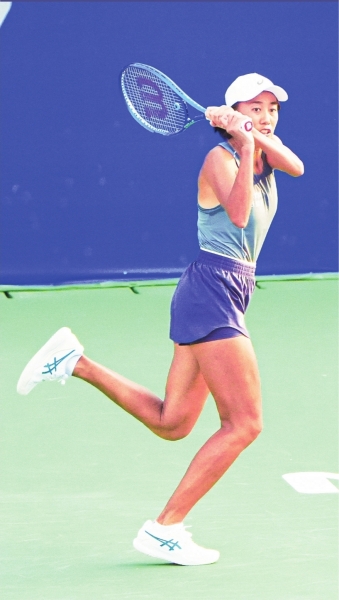 10月8日,张帅战满三盘获胜,“仿佛看到20岁时不服输的小将张帅”。图为张帅在比赛中回球。