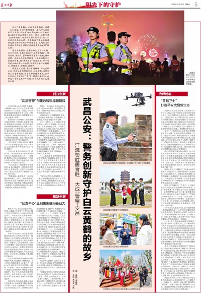 武昌公安坚持和发展新时代“枫桥经验”,在全市率先发展壮大“黄鹤卫士”群众性第一应急处置力量,建立健全责任共担、信息共享、风险共处、问题共治、平安共保制度机制,不断通过治理创新,完善立体化治安防控体系,被市局确立为首批“江城义警”11个示范品牌之一。如今,“黄鹤卫士”已从过去的“单打独斗”,逐步转变为联动物业、警方的治安积极分子,在基层治理中发挥着愈发重要的协同作用。今年以来,“黄鹤卫士”与武昌公安巡防力量互动策应,协助完成春节、开学季、开工季、长江文化艺术季、国庆中秋假期等重大安保42场次,前端解决矛盾纠纷,全区商圈、景区违法犯罪警情全面下降。