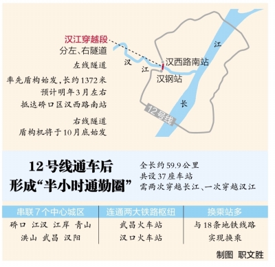 长江日报讯(记者陶常宁 通讯员李晓旭)10月20日,随着启动指令的下达,武汉首条地铁环线——12号线正式开始穿越汉江。
