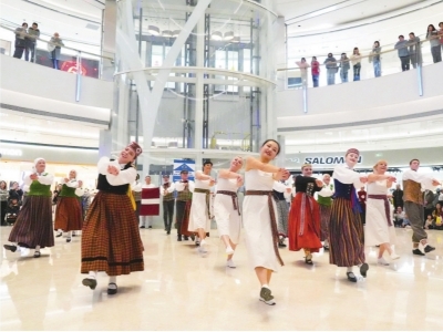 近两个小时的围圈载歌载舞让商场变身秀场。舞蹈团成员中年龄最小的18岁,最长的70岁。他们身着不同样式的民族服装,展现了热情洋溢、活泼团结的异域风情。演出以“欢乐共享·心灵共鸣”为主题,将拉脱维亚人民在漫长冬季以歌舞传递温暖的传统“娓娓道来”——演员们以灵动的舞步演绎自然之美、劳动之悦和团聚之欢,现代编曲与传统民歌的巧妙融合更赋予古老艺术新的生命力。