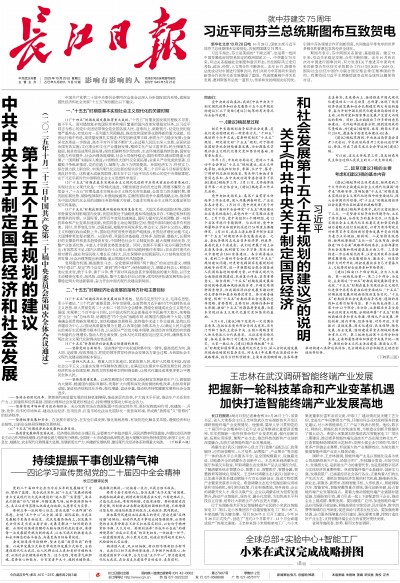 中共中央关于制定国民经济和社会发展第十五个五年规划的建议