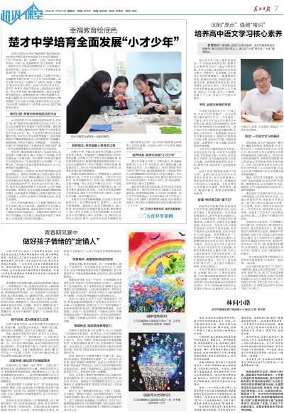在楚才中学,幸福文化如春风化雨融入五育并举的育人体系。“幸福感恩”主题教育现场,同学们围坐成圈,分享着与父母、老师之间的温暖故事,有的同学眼含热泪,真挚的情感感染着在场每个人;在社区志愿服务中,学生们带着工具清扫街道、看望独居老人,在付出中收获着帮助他人的快乐,培养社会责任感与奉献精神。