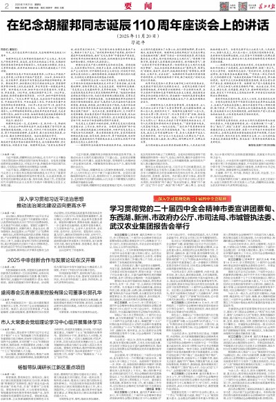 学习贯彻党的二十届四中全会精神市委宣讲团蔡甸、东西湖、新洲、市政府办公厅、市司法局、市城管执法委、武汉农业集团报告会举行