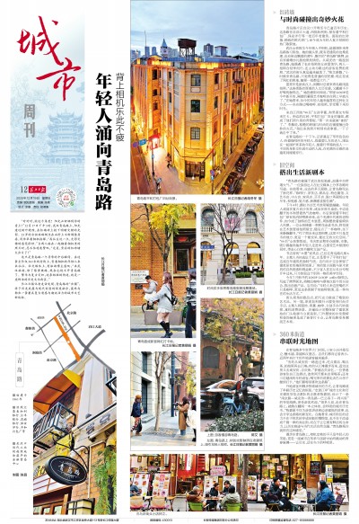 在青岛路的一个下午,记者遇见了形形色色的人:拎着咖啡杯的年轻人、推着婴儿车的老人、围坐在一起围炉煮茶的年轻人、拖着行李箱的旅人……不同的身影交织成生动的人流,在充满历史感的老建筑间缓缓穿行。