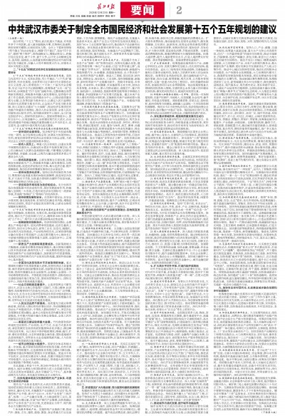 中共武汉市委关于制定全市国民经济和社会发展第十五个五年规划的建议
