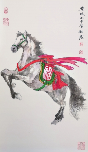马踏祥云至,福气绕身旁(中国画)
