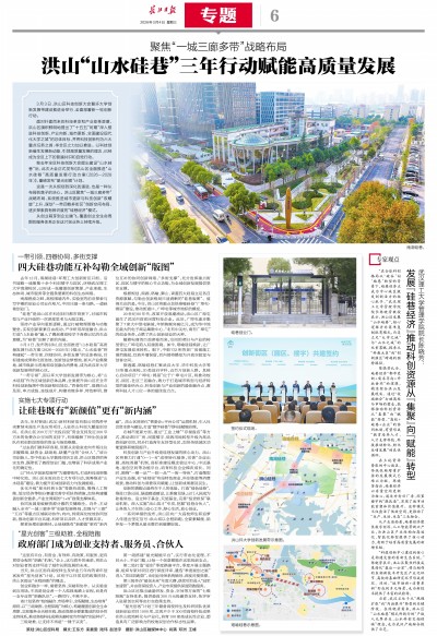 以“环大学创新发展带”为重要依托,打造科技成果集中转化地。洪山区全面启动七大专项行动,统筹推进“山水硅巷”建设,着力提升区域创新活力与发展能级。