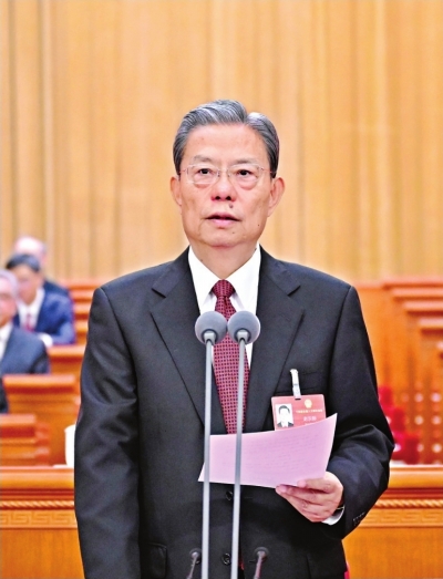 赵乐际说,我们要立足人大职能职责,坚持党的领导、人民当家作主、依法治国有机统一,践行全过程人民民主,坚持好、完善好、运行好人民代表大会制度,切实发挥国家根本政治制度优势,认真履行宪法法律赋予的职责,为实现“十五五”目标任务提供法治保障;人大代表要忠实代表人民利益和意志,依法履职尽责,密切联系群众,在本职岗位上建功立业、作出贡献。
